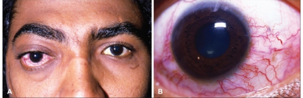 This type has a gradual onset and milder symptoms. The patient has a chronically red eye, but the ocular bruit is absent.